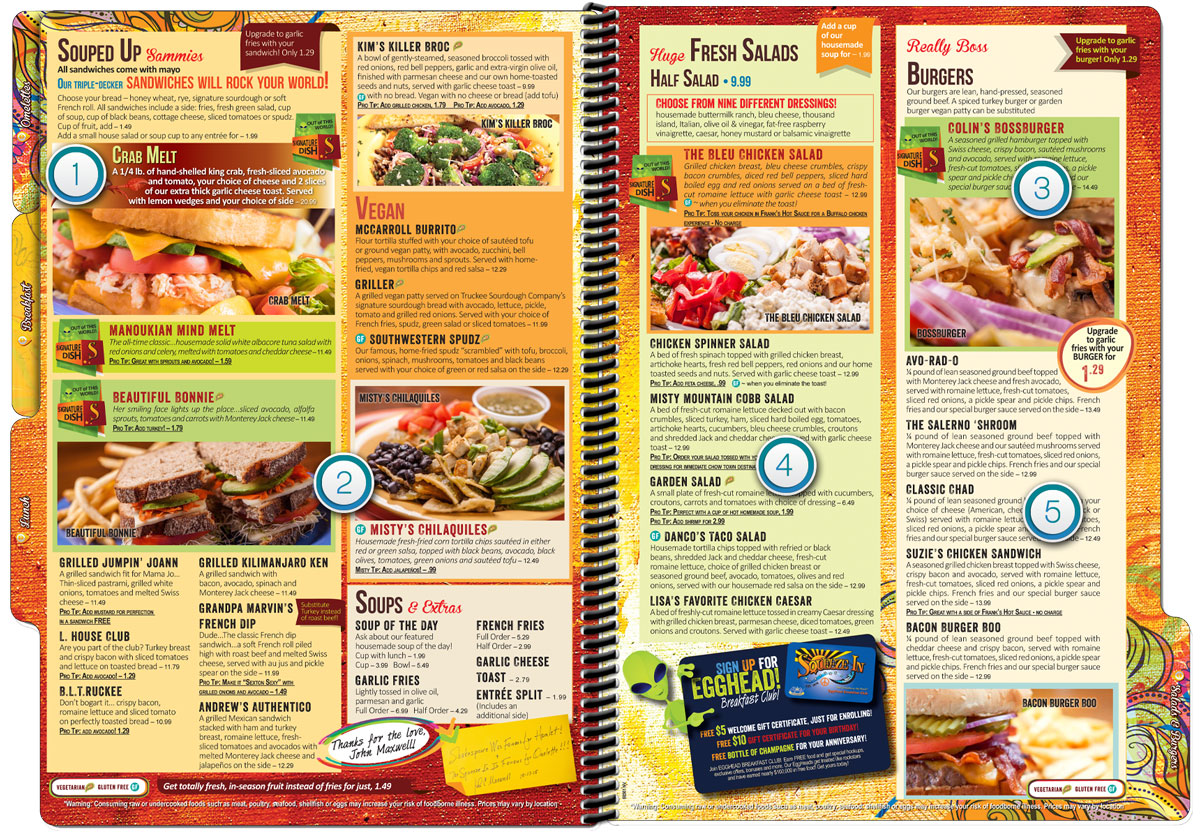 FOOD PHOTOGRAPHY1-3 photos per page is recommended. Using high quality photography entices customers to order high-profit items. Use food photography sparingly, as too many food photos are distracting and defeat the purpose. |