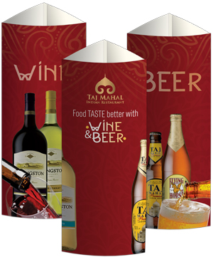 As with our menus, Table Tanks are printed on synthetic paper and then laminated to protect the text and graphics, ensuring a long-lasting product. Full color, sharp digitally printed graphics with printing that goes all the way to the edge for clean, consistent design. Our stay-put snapping system keeps your Table Tanks secure, helping special promotions get the attention they deserve.